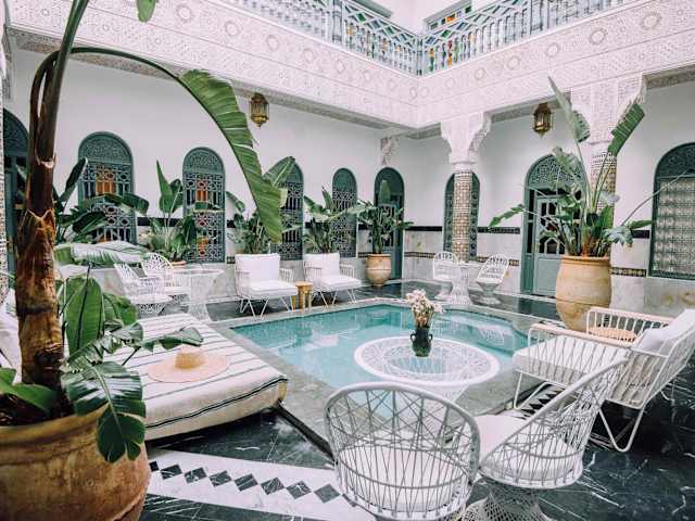 Das Ksar Kasbah & Spa in Marrakesch bietet seinen Gästen einen komfortablen Aufenthalt mit zahlreichen Annehmlichkeiten. Von der 24-Stunden-Rezeption über den Innenpool bis hin zum Mietwagenservice - hier wird für das Wohl der Gäste gesorgt. Die Zimmer sind gemütlich eingerichtet und verfügen über ein eigenes Bad und eine Klimaanlage. Im Restaurant können Sie köstliche afrikanische, mediterrane und regionale Gerichte genießen. Auch spezielle Ernährungsbedürfnisse wie laktosefreie, vegane und Halāl-Speisen werden berücksichtigt. Die Lage des Hotels ermöglicht es Ihnen, die Sehenswürdigkeiten von Marrakesch zu erkunden und Aktivitäten wie Radfahren zu unternehmen.