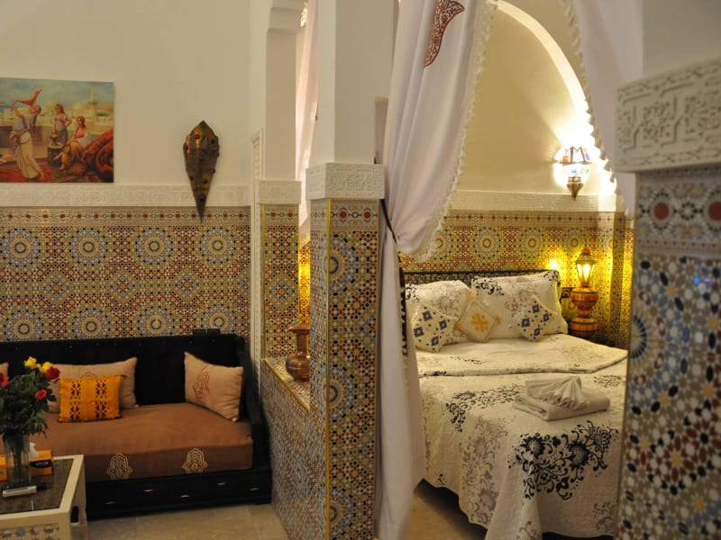 Im Riad L'Arabesque können Sie traditionelle und lokale Spezialitäten im Speisesaal oder auf der Terrasse im Freien genießen. Jeden Morgen wird ein traditionelles marokkanisches Frühstück serviert, um den Tag perfekt zu beginnen.