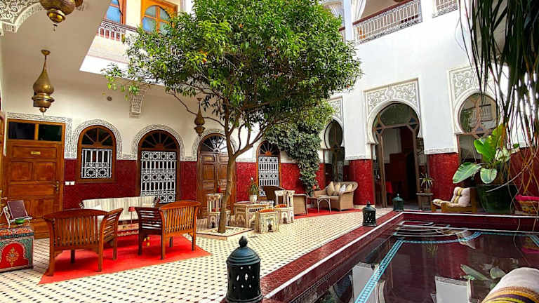 Das Riad La Perle Rouge befindet sich im Quartier Kasbah in Marrakesch. In unmittelbarer Nähe sind zahlreiche Sehenswürdigkeiten zu finden, darunter der Platz Djemaa El Fna in nur 10 Gehminuten, die Saaditengräber und die Moschee Moulay El Yazid, die beide in 5 Gehminuten erreichbar sind. Der Palast El Badi liegt nur 500 Meter entfernt. Die Umgebung bietet eine reiche Kultur und interessante Erkundungsmöglichkeiten.