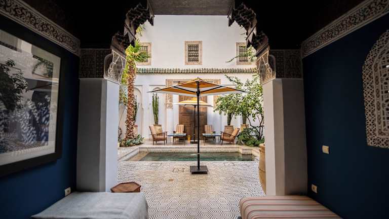 Das Riad Les Yeux Bleus in der alten Medina von Marrakesch bietet eine ideale Lage, nur wenige Gehminuten vom Platz Djemaa El Fna entfernt. Das Hotel verfügt über einen Außenpool und kostenlosem WLAN. Die Zimmer sind komfortabel eingerichtet und einige verfügen über einen Kamin. Entspannen Sie im Türkischen Bad oder auf der Terrasse mit Stadtblick. Die freundlichen Mitarbeiter an der 24-Stunden-Rezeption stehen Ihnen jederzeit zur Verfügung. Das Riad Les Yeux Bleus ist ein idealer Ausgangspunkt, um die Sehenswürdigkeiten von Marrakesch zu erkunden.