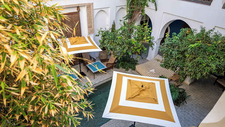Das Riad Les Yeux Bleus befindet sich in der alten Medina von Marrakesch und ist nur 10 Gehminuten vom Platz Djemaa El Fna entfernt. In der Umgebung gibt es zahlreiche Restaurants, Geschäfte und Sehenswürdigkeiten. Der Palais de Bahia, der Konferenzpalast und der botanische Garten Jardin Majorelle sind ebenfalls in der Nähe. Der Flughafen Menara ist etwa 20 Fahrminuten entfernt.