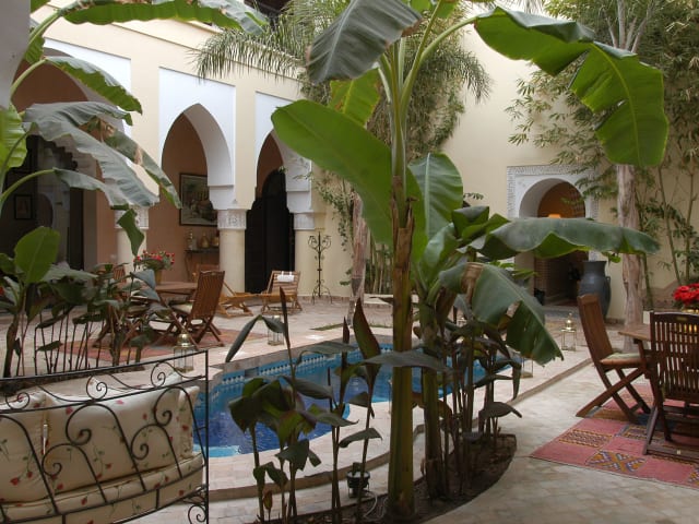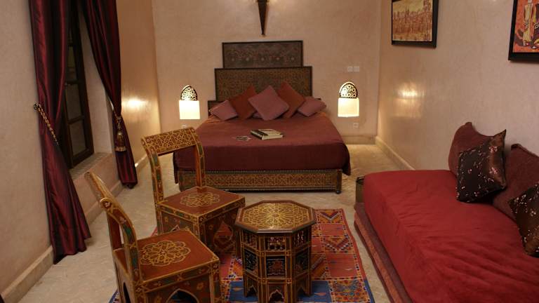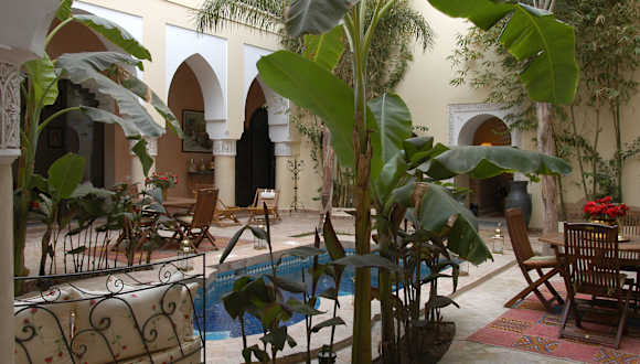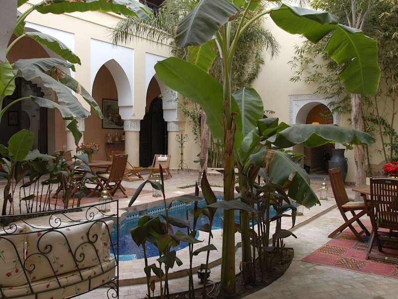 Das Frühstück wird täglich serviert. Am Abend können die Gäste traditionelle marokkanische Gerichte aus lokalen Zutaten im stilvollen Speisesaal oder im Innenhof neben dem Pool geniessen.