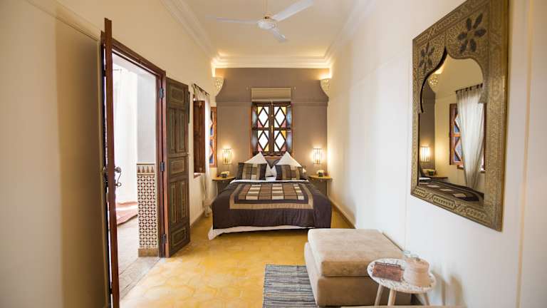 Die Zimmer im Riad Villa Harmonie sind klimatisiert und im traditionellen marokkanischen Stil eingerichtet. Jedes Zimmer verfügt über ein eigenes Bad mit Dusche sowie Badewanne und bietet Blick auf den Innenhof. Zur Ausstattung gehören ein Doppelbett, ein Telefon und kostenloses Wifi.