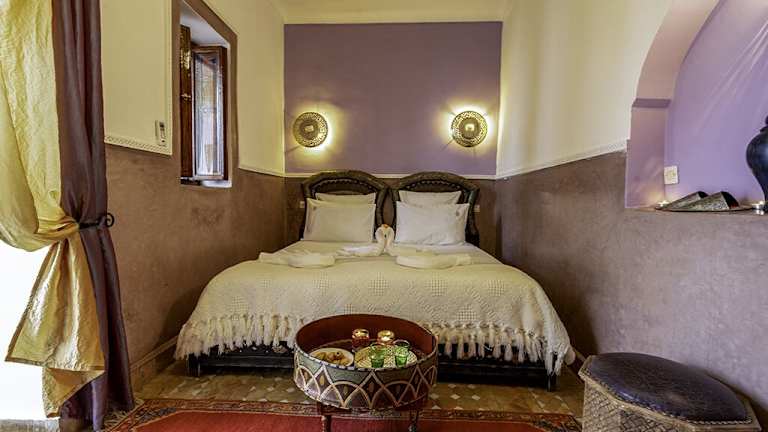 Das Riad hat in einem restaurierten Herrenhaus aus dem 18. Jahrhundert Platz gefunden und bietet eine traditionelle marokkanische Atmosphäre. Die Einrichtung verbindet Geschichte und Kultur, während die Anhörung der Gastfreundschaft im Mittelpunkt steht. Zu den Vorzügen gehören ein Hamam und eine Dachterrasse mit heimeligen Loungebereichen.