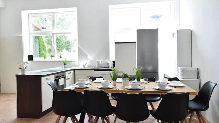 Die Unterkunft umfasst zwei Schlafzimmer, eine gut ausgestattete Küche mit Kühlschrank und Geschirrspüler sowie eine Waschmaschine. Zudem stehen den Gästen zwei Badezimmer mit Haartrockner zur Verfügung. Handtücher und Bettwäsche werden gestellt.