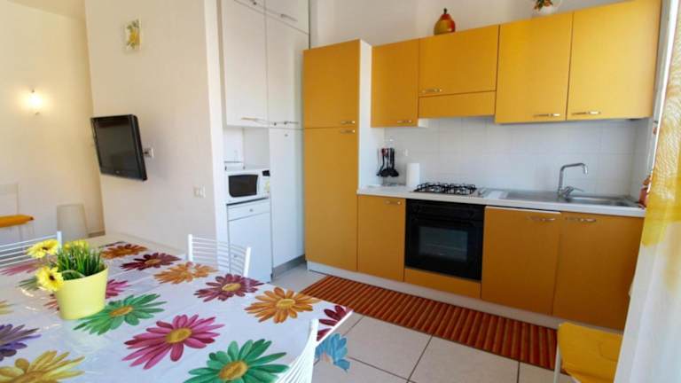 Rif. B12 - DELFINO 2 ist eine gut ausgestattete Ferienwohnung mit Klimaanlage, die aus zwei separaten Schlafzimmern, einem Wohnzimmer und einer voll ausgestatteten Küche mit Kühlschrank und Geschirrspüler besteht. Die Unterkunft verfügt über ein Badezimmer und einen TV. Das Hotel hat einige zusätzliche Regeln, so sind Junggesellen- und Junggesellinnenabschiede sowie ähnliche Feiern nicht gestattet. Mindestalter für den Check-in ist 18 Jahre.