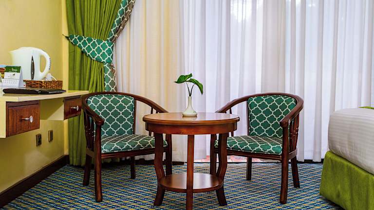 Die Unterkunft bietet verschiedene Verpflegungsmöglichkeiten. Ein Frühstück wird als Buffet, à la carte oder kontinentales Frühstück serviert. Im Restaurant der Unterkunft werden afrikanische, britische und internationale Gerichte angeboten. Auf Anfrage sind auch spezielle Optionen wie vegetarische, milchfreie und halal-zubereitete Speisen erhältlich.