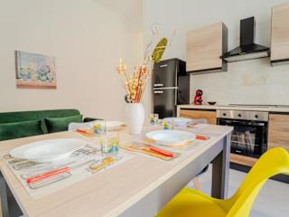 Die Ferienwohnung hat Klimaanlage und besteht aus 1 Schlafzimmer, einem Wohnzimmer sowie einer voll ausgestatteten Küche mit Kühlschrank und Kaffeemaschine. Das Badezimmer beinhaltet ein Bidet und eine Dusche. Handtücher und Bettwäsche werden bereitgestellt.