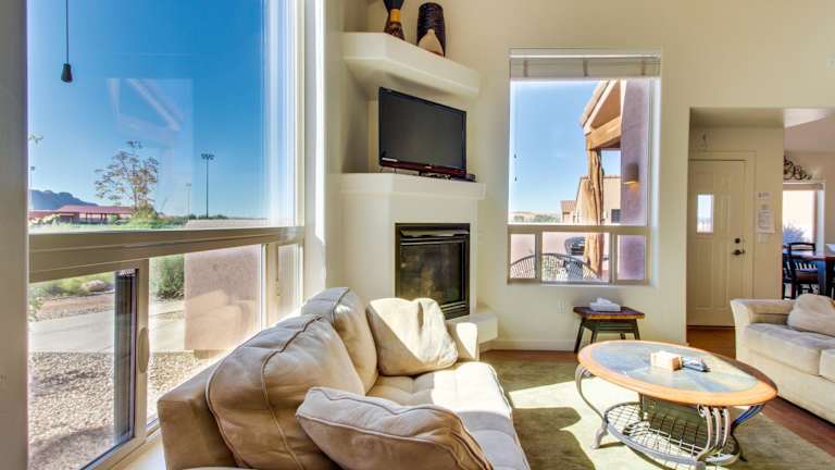 Rim Vista 3A6 besticht durch eine heimelige Atmosphäre und verfügt über kostenloses WLAN sowie Klimaanlage. Das Ferienhaus bietet Platz in drei Schlafzimmern und drei Badezimmern, ideal für Familien oder Gruppen. Die Veranda mit Bergblick lädt zum Entspannen ein.