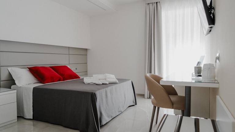 Die klimatisierten Zimmer im RIMIR Hotel & Centro Benessere sind mit einem Schreibtisch, Wasserkocher, Kühlschrank, Minibar, Safe, Flachbild-TV, Balkon und einem eigenen Badezimmer mit Bidet ausgestattet. Alle Zimmer sind mit Bettwäsche und Handtüchern eingerichtet.