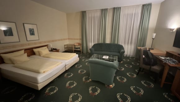 Das Hotel befindet sich im Herzen der historischen Stadt Zittau in einer ruhigen Fußgängerzone, nur 2 Gehminuten vom historischen Marktplatz entfernt. Zittau ist die südöstlichste Stadt Deutschlands und das Tor zu den Zittauer Bergen, mit Restaurants und Einkaufsmöglichkeiten in der Umgebung. Der internationale Flughafen Dresden-Klotsche liegt 120 km entfernt, und ein Shuttleservice zum Bahnhof Zittau kann arrangiert werden.
