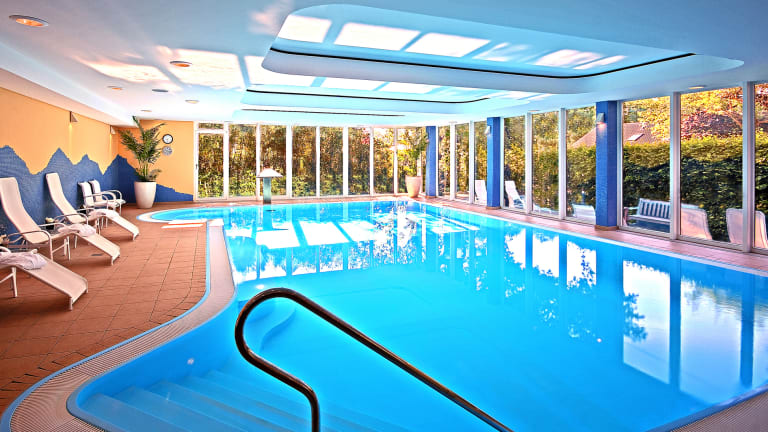 In unserer Saunalandschaft können Sie zwischen fünf verschiedenen Saunen wählen. Im Anschluss entspannen Sie um Ruheraum mit Musik oder in unserem Saunagarten. Ein Schwimmbad mit Whirlpoolecke, Sprudelbank und Gegenstromanlage, empfängt Sie bei einer angenehmen Luft- und Wassertemperatur. Im Fitnessraum stehen hochwertige Cardiogeräte und eine Kinesis-Wand für geführtes Muskeltraining für Sie bereit.