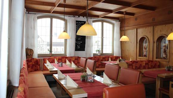 Das Frühstück wird täglich von 08:00 bis 10:00 Uhr serviert. Ausserdem können Gäste italienische Spezialitäten im Restaurant im Landhausstil oder im hellen Wintergarten geniessen. In den Sommermonaten besteht die Möglichkeit, auf der Terrasse zu speisen. Das Restaurant hat mittwochs geschlossen und ist von Dienstag bis Sonntag ab 17:30 Uhr geöffnet, zusätzlich auch samstags und sonntags von 11:30 bis 14:00 Uhr.