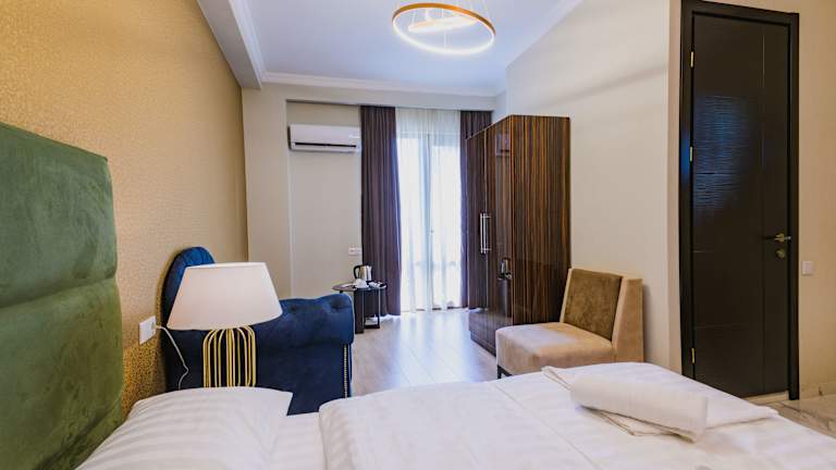 Die Zimmer der Unterkunft sind mit Klimaanlage, einem Sitzbereich, einem Flachbild-TV mit Satellitenkanälen, einem Safe und einem eigenen Badezimmer mit Bidet ausgestattet. Zu den kostenlosen Pflegeprodukten gehören ein Haartrockner. Jedes Zimmer verfügt über einen Wasserkocher, während ausgewählte Zimmer mit einem Balkon ausgestattet sind. Einige Zimmer bieten zudem einen Blick auf die Stadt. Bettwäsche und Handtücher sind in den Zimmern vorhanden.
