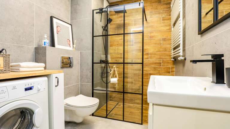 Die Wohnung besteht aus einem Schlafzimmer, einem Wohnzimmer und einer voll ausgestatteten Küche, die mit einem Kühlschrank und einer Kaffeemaschine ausgestattet ist. Des Weiteren gibt es ein Badezimmer mit einer Dusche. Ein Balkon gehört ebenfalls zur Ausstattung.
