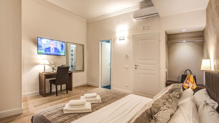 Die Zimmer in der River Luxury Suites sind klimatisiert und verfügen über moderne Annehmlichkeiten wie Bettwäsche und Handtücher. Jedes Zimmer hat ein eigenes Badezimmer mit Bidet und bietet eine angenehme Atmosphäre für den Aufenthalt der Gäste.