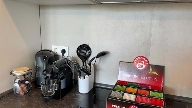 Die Unterkunft beinhaltet eine voll ausgestattete Küche, die die Zubereitung von eigenen Mahlzeiten ermöglicht. Für den Genuss vor Ort steht ein Essbereich zur Verfügung.