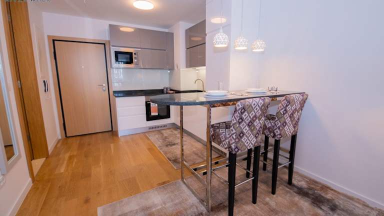 Die Unterkunft verfügt über einen Sitzbereich, einen Flachbild-TV und eine voll ausgestattete Küche mit Kühlschrank und Ofen. Zudem gibt es ein eigenes Badezimmer mit Dusche und kostenlosen Pflegeprodukten, eine Herdplatte sowie einen Wasserkocher.