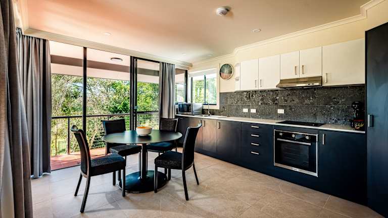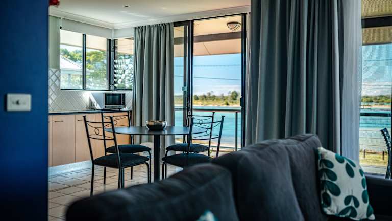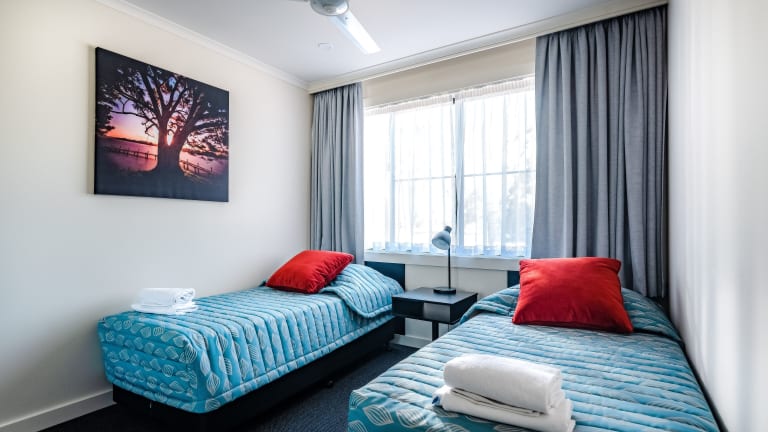 Die Apartments im Riverside Holiday Resort sind klimatisiert und mit Heizung ausgestattet. Jedes Apartment umfasst zwei Schlafzimmer sowie eine voll ausgestattete Küche mit Backofen, Kühlschrank, Kochfeld, Mikrowelle, Toaster und Kaffeemaschine. Eine Terrasse mit Gartenmöbeln, ein Wäschetrockner, Bügeleisen, Waschmaschine, TV und DVD-Player sind ebenfalls vorhanden.