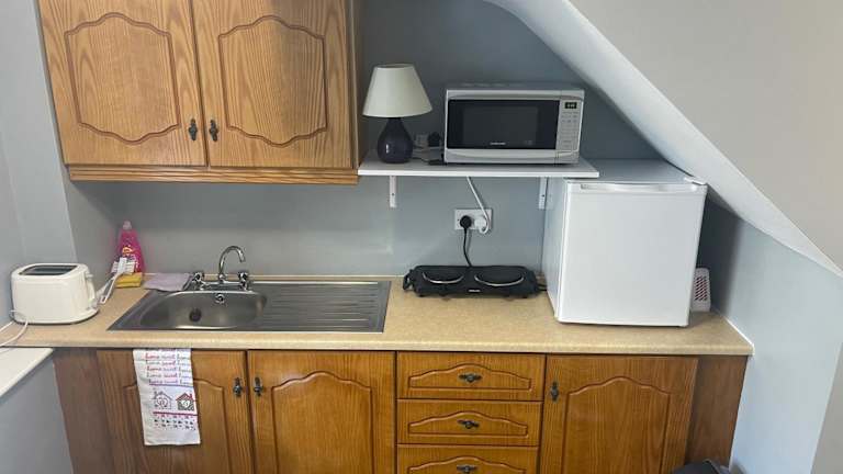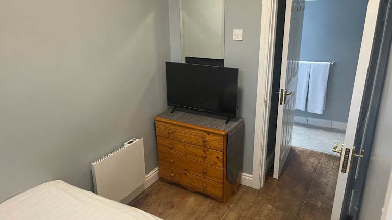 Die Ferienwohnung bietet ein Schlafzimmer und ist ausgestattet mit einer Küchenzeile, die einen Kühlschrank und eine Mikrowelle umfasst. Ein Flachbild-TV, ein Sitzbereich und ein Badezimmer mit Dusche sind ebenfalls vorhanden. Handtücher und Bettwäsche werden bereitgestellt.