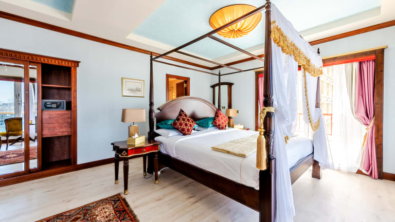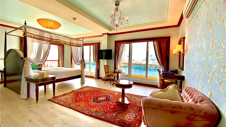 Rooms at the Riviera Hotel feature balconies with city or creek views, Rooms size is between 32 sqm, 37 sqm and 100 sqm, they include modern furnishings and come equipped with air conditioning, a minibar as well as tea-and-coffee making facilities. The breathtaking view from the balconies of hotel's rooms for the Dubai Creek and the Downtown Dubai city skyline glittering with light each night as it reflects over the creek is truly an unforgettable sight.