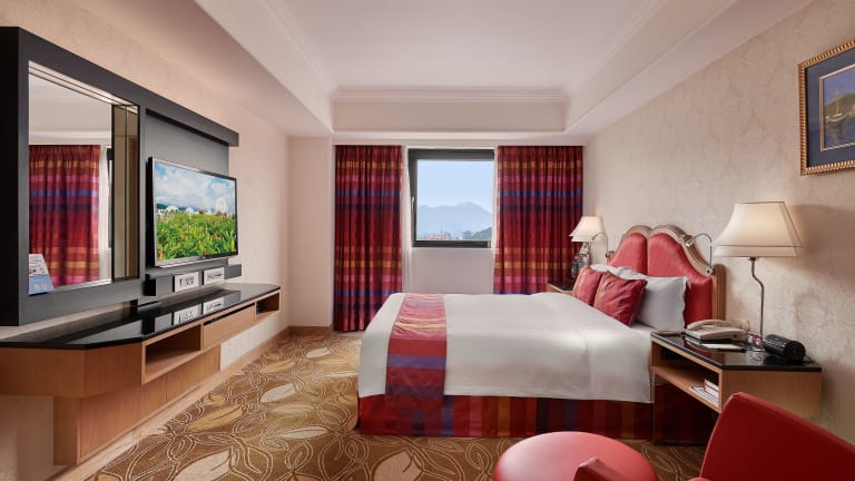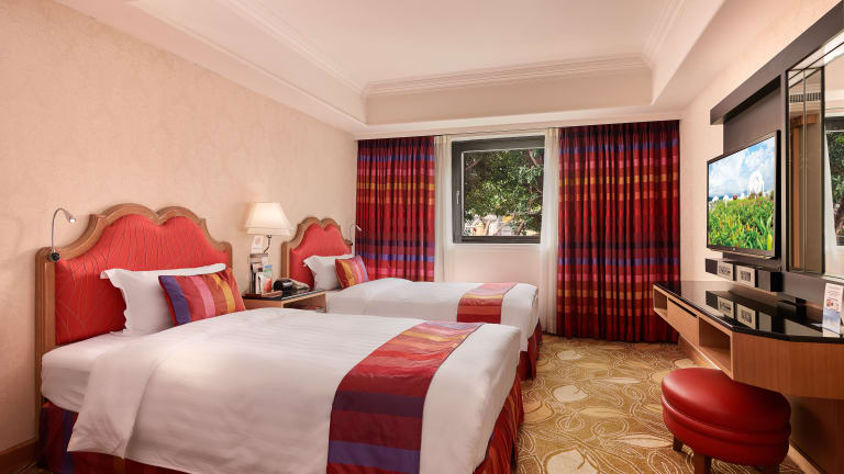 Die Zimmer sind mit Klimaanlage, individuell steuerbarer Heizung, Doppelbett oder Kingsize-Bett, Safe, Schreibtisch, Minikühlschrank und einer Tee-/Kaffeemaschine ausgestattet. Auch ein Fernseher mit Satelliten-/Kabelempfang, ein CD-Player und WiFi sind vorhanden. Die Badezimmer verfügen über eine Dusche, eine Badewanne und sind mit Bademänteln, Haartrockner und Kosmetikartikeln ausgestattet. Für Familien gibt es spezielle Familienzimmer.