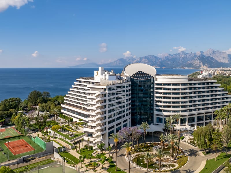 Rixos Downtown Antalya überzeugt durch seine besondere Lage, in der Stadtleben und Natur harmonisch aufeinandertreffen, und bietet einen herrlichen Blick auf das Mittelmeer und das Taurusgebirge. Dank der Nähe zu den kulturellen und historischen Sehenswürdigkeiten Antalyas genießen die Gäste zudem den exklusiven Zugang zum The Land of Legends, der Unterhaltung und Shopping auf höchstem Niveau ermöglicht. Der berühmte Konyaaltı-Strand liegt nur etwa 300 Meter entfernt, ist über den Aufzug im Atatürk-Park bequem erreichbar und wird zusätzlich durch einen kostenlosen Shuttle-Service angebunden. Die komfortablen Zimmer mit Balkon verfügen über Minibar, LCD-TV, Satellitenempfang, zentrale Klimaanlage und kostenfreies WLAN. Als Alternative zum Strand steht ein Außenpool mit Sonnenliegen und Sonnenschirmen zur Verfügung. Das Frühstück wird in Buffetform mit ausgewählten Spezialitäten der türkischen Küche serviert, während zum Mittag- und Abendessen internationale Gerichte angeboten werden. In den neuen À-la-carte-Restaurants sorgen hochwertige Zutaten und kreative Konzepte für ein besonderes kulinarisches Erlebnis. Im Anjana Spa laden Sauna, Hamam und verschiedene Massageanwendungen zum Entspannen ein. Für aktive Gäste bieten der Exclusive Sports Club sowie abwechslungsreiche Sportaktivitäten unter professioneller Betreuung ideale Möglichkeiten, aktiv zu bleiben.