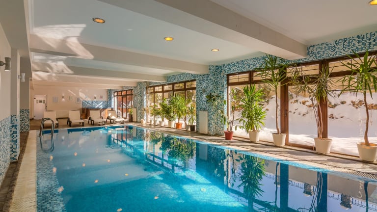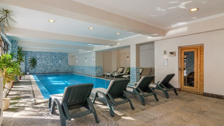 Das Hotel bietet eine heimelige Atmosphäre mit Blick auf die umliegenden Wälder. Es verfügt über einen beheizten Innenpool und einen Wellnessbereich mit Sauna und Whirlpool, der direkten Zugang zu einem Garten mit kleiner Sommerterrasse bietet. Das eleganten Restaurant mit Glaskronleuchtern serviert gehobene internationale Küche.