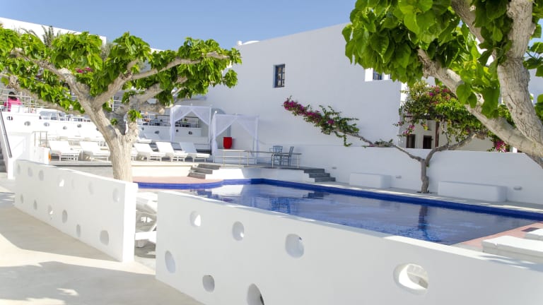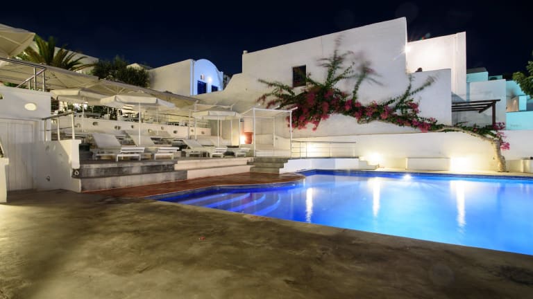 Das RK Beach Hotel befindet sich im Zentrum von Kamari und bietet eine ideale Lage direkt am Strand. Von hier aus können Sie die wunderschöne Umgebung erkunden und Santorin entdecken. Ein Weingut liegt nur wenige Kilometer entfernt und der Flughafen Santorin ist ebenfalls gut erreichbar.