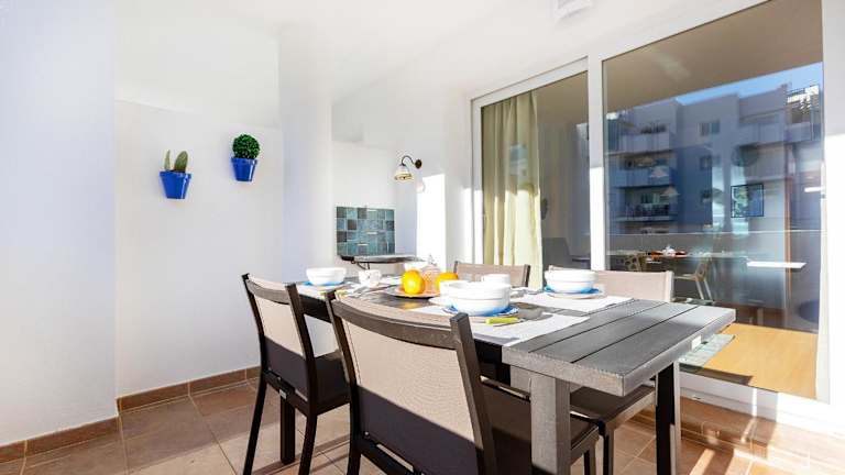 Die Unterkunft RNET - Royal Marine II Roses besteht aus einer Ferienwohnung und bietet eine Terrasse mit Poolblick.