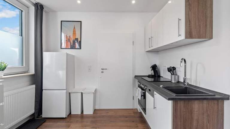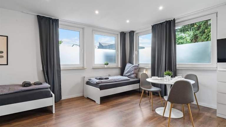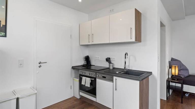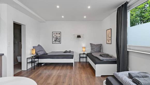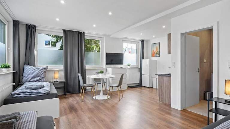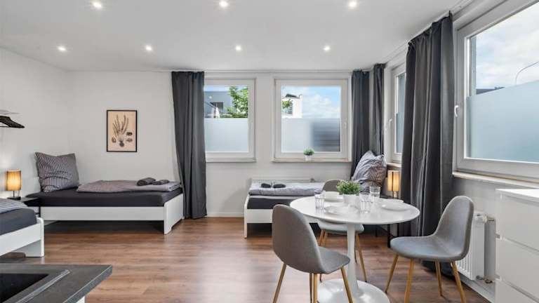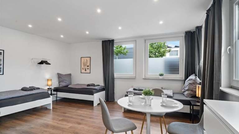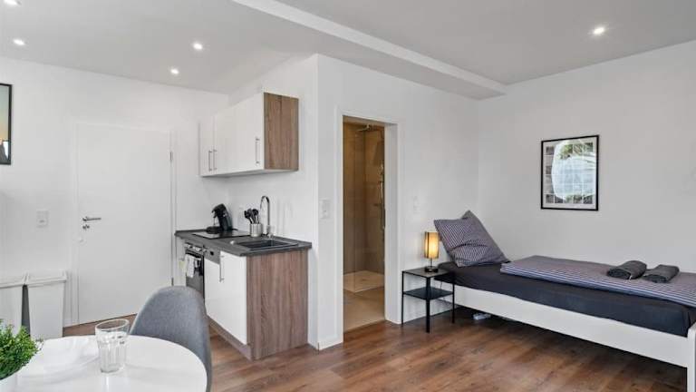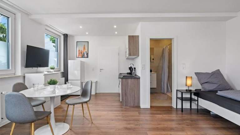 Die Ferienwohnung RO01 Schickes 1-Zimmer Apartment bietet eine helle und moderne Atmosphäre, ideal für einen Aufenthalt in Darmstadt. Sie befindet sich im Erdgeschoss und ist sehr gut ausgestattet.