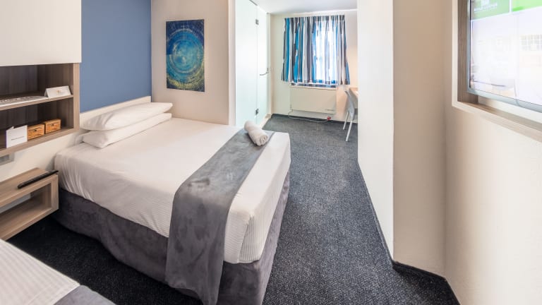 Die Zimmer sind mit einer Klimaanlage ausgestattet und verfügen über ein Doppelbett oder ein Sofabett. Zustellbetten können angefordert werden. Ein Schreibtisch, Telefon und kostenfreies Wifi sind ebenfalls vorhanden. Die Badezimmer sind mit Duschen und Haartrocknern ausgestattet und bieten Kosmetikartikel für zusätzlichen Komfort. Rollstuhlgerechte Zimmer sind ebenfalls verfügbar.