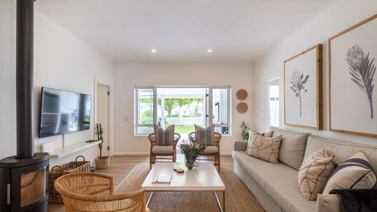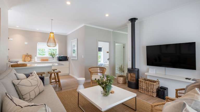 Das Ferienhaus verfügt über einen Wohnbereich mit einem Sofa, Sesseln und einem Flachbild-TV. Die voll ausgestattete Küche beinhaltet einen Geschirrspüler. Es gibt zwei Badezimmer, eines mit Badewanne und Dusche, das andere mit ebenerdiger Dusche. Handtücher und Bettwäsche werden bereitgestellt. Zu den Annehmlichkeiten gehören eine möblierte Terrasse und Grillmöglichkeiten.