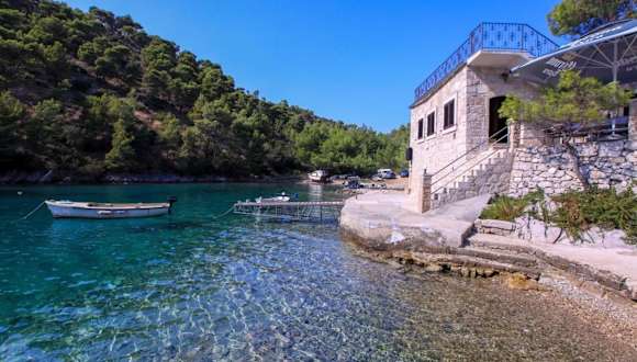 Die Unterkunft Robinson Nino ist gelegen in Bogomolje, direkt am Strand. Der nächstgelegene Flughafen, Flughafen Brac, ist 83 km entfernt. Die Lage ist im 'Robinson Crusoe Stil', was bedeutet, dass sie nicht leicht zugänglich ist und die Infrastruktur sehr grundlegend ist. Der Zugang erfolgt über einen 800 Meter langen unbefestigten Weg.