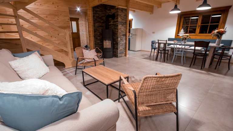 Die Unterkunft Rodinná roubenka U Tří skřítků bietet einladende und praktische Annehmlichkeiten, darunter einen Balkon und eine Terrasse mit Blick auf den Garten. Die Ferienwohnung ist ideal für Familien geeignet.