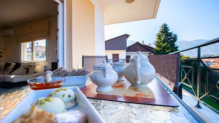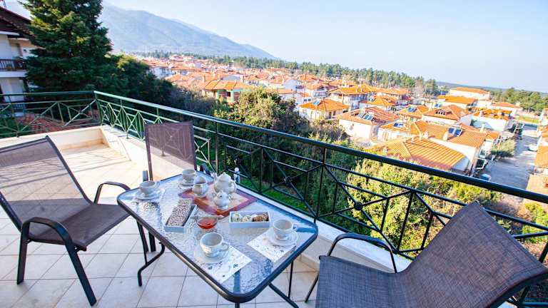 Die Unterkunft befindet sich in der Nähe des Meeres und bietet einen schönen Blick auf die Umgebung. Etwa 19 km von Olymp und 11 km von Dion gelegen, ist die Burg von Platamonas rund 17 km entfernt. Die Umgebung bietet verschiedene Möglichkeiten zum Velofahren.