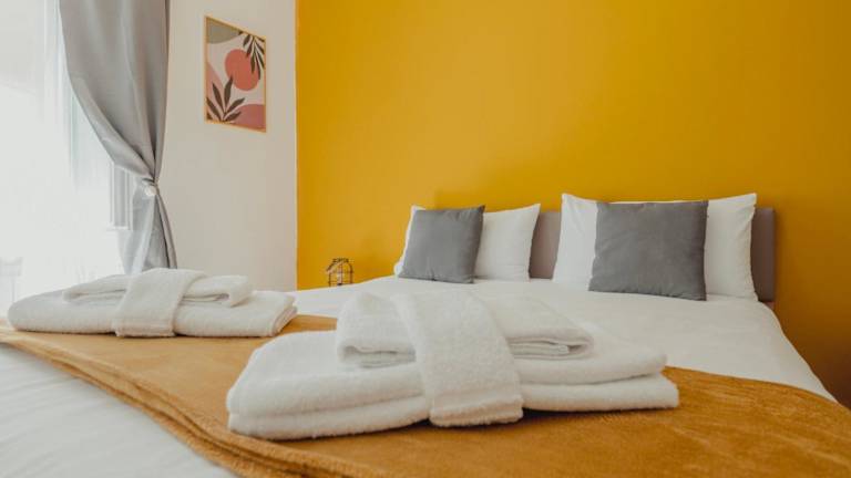 Die Ferienwohnung umfasst 2 Schlafzimmer, ein Wohnzimmer, eine voll ausgestattete Küche mit Kühlschrank und Kaffeemaschine sowie 1 Badezimmer mit Bidet und Dusche. Handtücher und Bettwäsche werden bereitgestellt. Die Unterkunft ist voll ausgestattet und bietet alle nötigen Bequemlichkeiten für einen angenehmen Aufenthalt. Haustiere sind ebenfalls erlaubt.