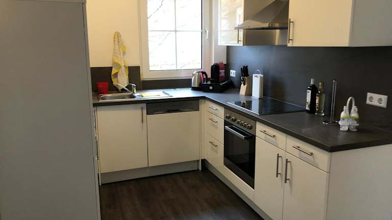 Die Ferienwohnung verfügt über ein Schlafzimmer mit einem Flachbild-TV, einer gut ausgestatteten Küche mit Kühlschrank und Geschirrspüler sowie einem Badezimmer mit Dusche. Handtücher und Bettwäsche werden bereitgestellt.