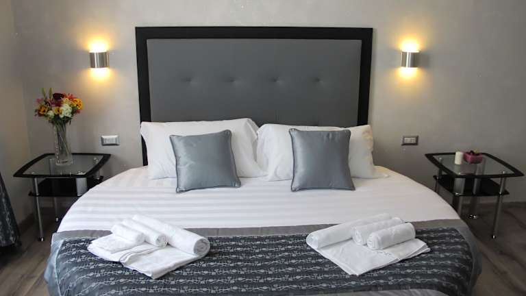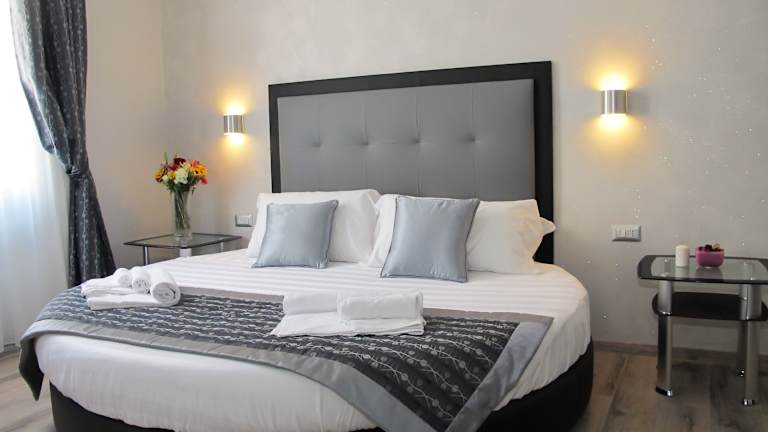 Die Zimmer im Roma Veneto Relais sind komfortabel eingerichtet und verfügen über Annehmlichkeiten wie Flachbild-TV und eigenes Badezimmer. Genießen Sie Ihren Aufenthalt in einem gemütlichen Zimmer und fühlen Sie sich wie zu Hause.