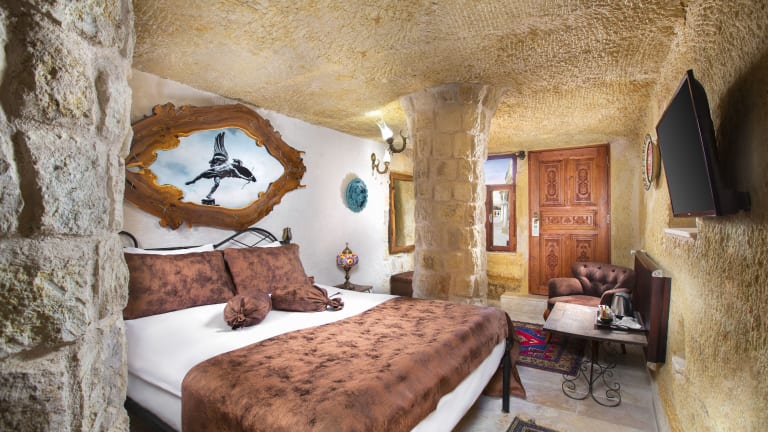 Die Zimmer im Romantic Cave Hotel sind gut ausgestattet mit einem Kleiderschrank, einer Veranda oder einem Patio mit Stadtblick, einem eigenen Badezimmer, einem Flachbild-TV, sowie Bettwäsche und Handtüchern. Jedes Zimmer verfügt zudem über einen Safe. Schallisolierte Zimmer sind ebenfalls vorhanden.