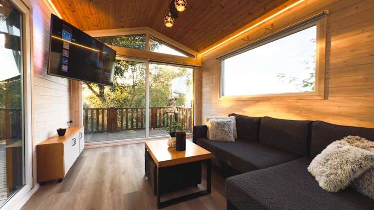 Das Tiny Beach House verfügt über ein komfortables Chalet mit 2 Schlafzimmern. Das Chalet ist beheizt und klimatisiert und bietet Ihnen eine gemütliche Atmosphäre. Entspannen Sie sich im Wohnzimmer und genießen Sie Ihre Lieblingssendungen auf dem Flachbild-TV. Die Unterkunft verfügt auch über eine voll ausgestattete Küche, in der Sie Ihre eigenen Mahlzeiten zubereiten können.