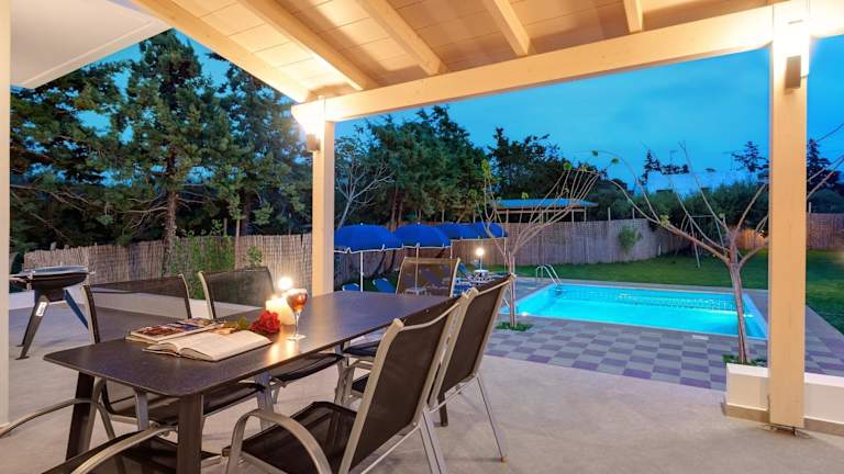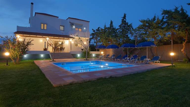 Die Villa umfasst 4 Schlafzimmer, ein Wohnzimmer und eine voll ausgestattete Küche mit Kühlschrank und Kaffeemaschine. Es gibt 3 Badezimmer mit Dusche und kostenlosen Pflegeprodukten. Die technischen Annehmlichkeiten beinhalten einen Flachbild-TV mit Kabelkanälen, einen Blu-ray-Player, einen DVD-Player sowie einen CD-Player. Die Räume sind klimatisiert und schallisoliert.