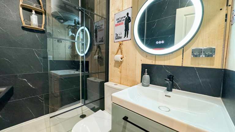Die Ferienwohnung verfügt über 1 Schlafzimmer, 1 Badezimmer, sowie Bettwäsche und Handtücher. Ein Flachbild-TV, ein Essbereich und eine voll ausgestattete Küchenzeile sind ebenfalls vorhanden. Die Terrasse bietet einen Blick auf den Garten.