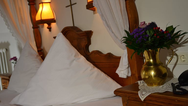 Unser Hotel bietet Ihnen 46 individuelle Zimmer. Jedes Zimmer hat seinen eigenen Charme. Vom Wasserbettzimmer bis zum König-Ludwig-Zimmer mit verspiegeltem Baldachin. Jedes Jahr renovieren wir mehrere Zimmer komplett, die Sie dann gegen einen kleinen Upgradepreis gerne zubuchen können. Unser Hotel ist das größte Einzelhotel in der mittelalterlichen Stadt Dinkelsbühl, wird aber dennoch sehr familiär und persönlich geführt. Es liegt zentral in der Dinkelsbühler Altstadt. Wir haben ein kleines Indoor-Schwimmbad mit Sauna, Dampfbad und Massagepraxis. Beachten Sie bitte, dass unser Hotel 450 Jahre alt ist und über keinen Aufzug verfügt (dieser ist aus statischen Gründen nicht einbaubar). Gerne helfen wir aber beim Gepäckservice.