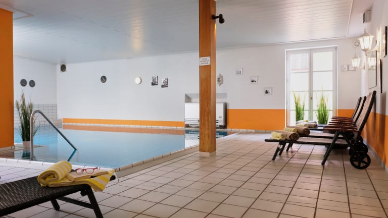 Wir haben einen kleinen Pool im Haus (8 mal 11 Meter), der gerne von Familien in Anspruch genommen wird. Auch Gäste, die sich frühmorgens kurz erfrischen wollen oder Geschäftsreisende, die abends vor 21 Uhr ankommen, nehmen den Pool gerne in Anspruch. Dazu bieten wir eine kleine finnische Sauna und ein kleines Dampfbad. Wer will, kann sich von unserer Masseuse Lidia gerne mit diversen Massagen verwöhnen lassen: einfach beim Check-In nachfragen, Zeit ausmachen und relaxen.