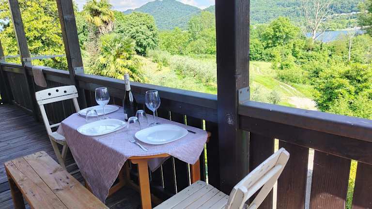 Romantica terrazza sul lago ist eine gemütliche Unterkunft mit einem kostenlosen Privatparkplatz und einer einladenden Terrasse.