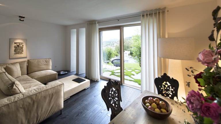 Das Romantik Hotel Turm liegt im Zentrum von dem Dorf Völs, direkt am Fuße des Schlern.