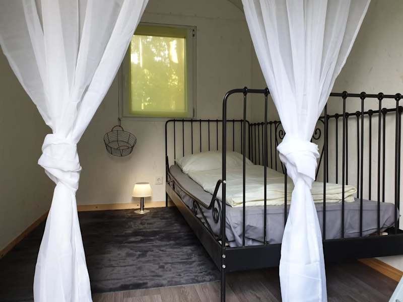 Die Übernachtungsmöglichkeiten umfassen einen romantischen Bauwagen, der mit einer Klimaanlage ausgestattet ist. Weitere Details zur Ausstattung der Zimmer sind nicht vorhanden.