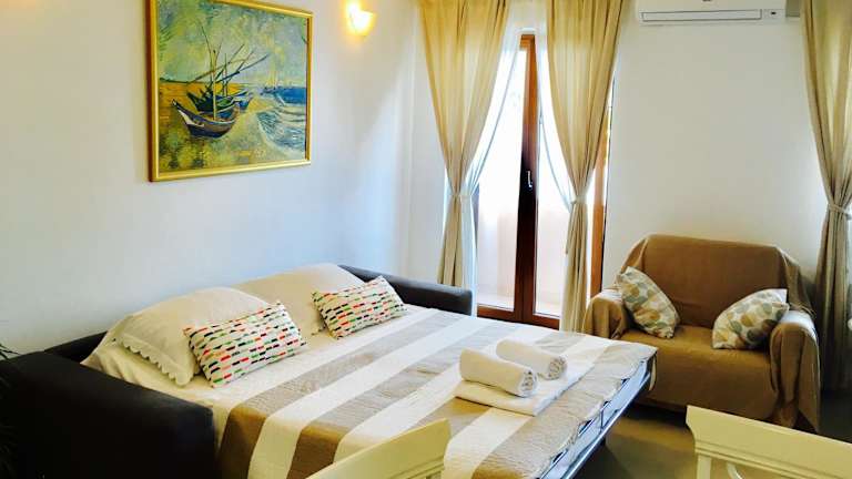 Die Gäste können zwischen verschiedenen Zimmerkategorien wählen, die alle mit einer Klimaanlage, einem TV, einem Kühlschrank und einem Wasserkocher ausgestattet sind. Jedes Zimmer verfügt über ein eigenes Badezimmer und einen Schreibtisch. Einige Wohneinheiten bieten eine Terrasse sowie einen Blick auf das Meer.