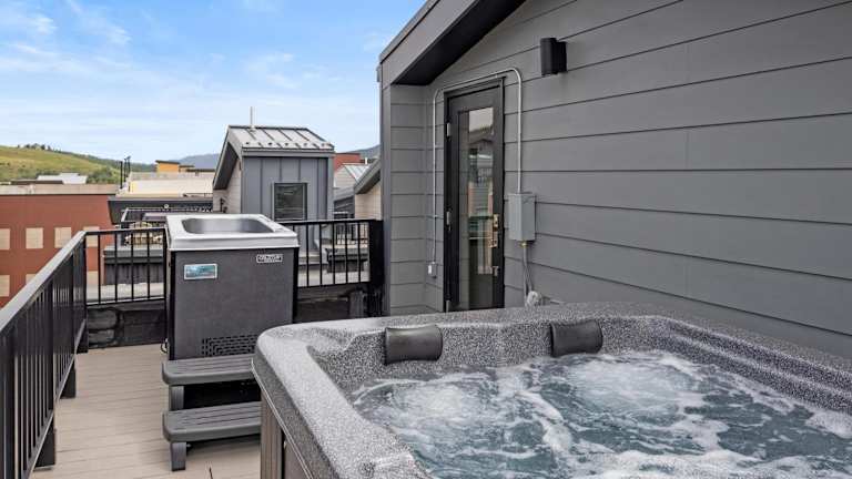 Roof Deck - MTN View - Hot Tub - Cold Plunge bietet Übernachtungsmöglichkeiten in einem Ferienhaus mit einer Veranda und Balkon sowie einem wunderbaren Blick auf die Berge. Die Unterkunft umfasst einen Whirlpool sowie einen kostenlosen Privatpark mit Parkiermöglichkeiten und kostenlosem WLAN. Die Unterkunft gewährleistet eine Nichtraucherumgebung und verfügt über Massnahmen zur Hygiene und Sicherheit in Übereinstimmung mit den lokalen Richtlinien.